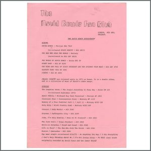 B40132 – David Bowie Fan Club Discography 1973 (UK)