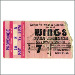 £80.00Add to basketAn original concert ticket stub for the Paul McCartney and Wings performance at the Olympia Stadium, Detroit on the 7th May 1976 as part of the Wings Over The World…