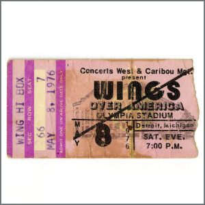 £80.00Add to basketAn original concert ticket stub for the Paul McCartney and Wings performance at the Olympia Stadium, Detroit on the 8th May 1976 as part of the Wings Over The World…