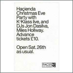 B40002 – Factory FAC 51 Hacienda 1993 Pair Of Christmas Eve Flyers Ticket John Macklin Collection (UK)
